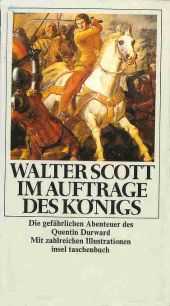 Lande. Vor der beabsichtigten Überquerung einer Furt im Fluss Cher befragt er zwei sich auf der gegenüberliegenden Flussseite befindliche Franzosen nach der Sicherheit dieses Flussdurchwegs. Doch er erhält keine Antwort. Der Fluss reißt Quentin von den Füßen, doch dank seiner Schwimmkünste gelangt er an sein Ziel. Die Franzosen bewundern die Schwimmkünste des Jünglings, auch plagt - zumindest den älteren - das schlechte Gewissen, ihn nicht vor der Gefahr gewarnt zu haben. Die beiden, der ältere stellt sich als Meister Peter vor, der jüngere soll Förster sein, versprechen Quentin ein opulentes Mahl in einem Gasthaus. Mit der Hilfe von Meister Peter findet Quentin seinen Oheim Balafré, der als Krieger in den Diensten des Königs steht. Unfreiwillig wird Quentin königlicher Knappe. Bei einer Eberjagd wird er dem König bekannt. Dieser setzt den Knappen bei einer geheimen Mission als Bewacher ein. Er soll eine burgundische Gräfin, die vor einer erzwungenen Ehe nach Frankreich geflohen ist, in ein sicheres Asyl zu dem Bischof von Lüttich führen. Doch in Wirklichkeit verfolgt der König andere Absichten. ... |